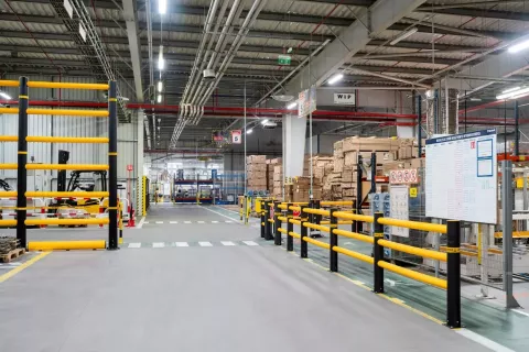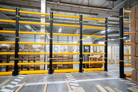 Barierele Wall Protector au fost amplasate strategic pentru a proteja zonele de depozitare pe înălțime împotriva deplasării mărfurilor și pentru a securiza spațiile de producție în care operează utilaje și roboți industriali. În același timp, barierele GB HD+, ranforsate în partea inferioară, au oferit protecție eficientă împotriva impactului produs de furcile stivuitoarelor care circulă la sol.